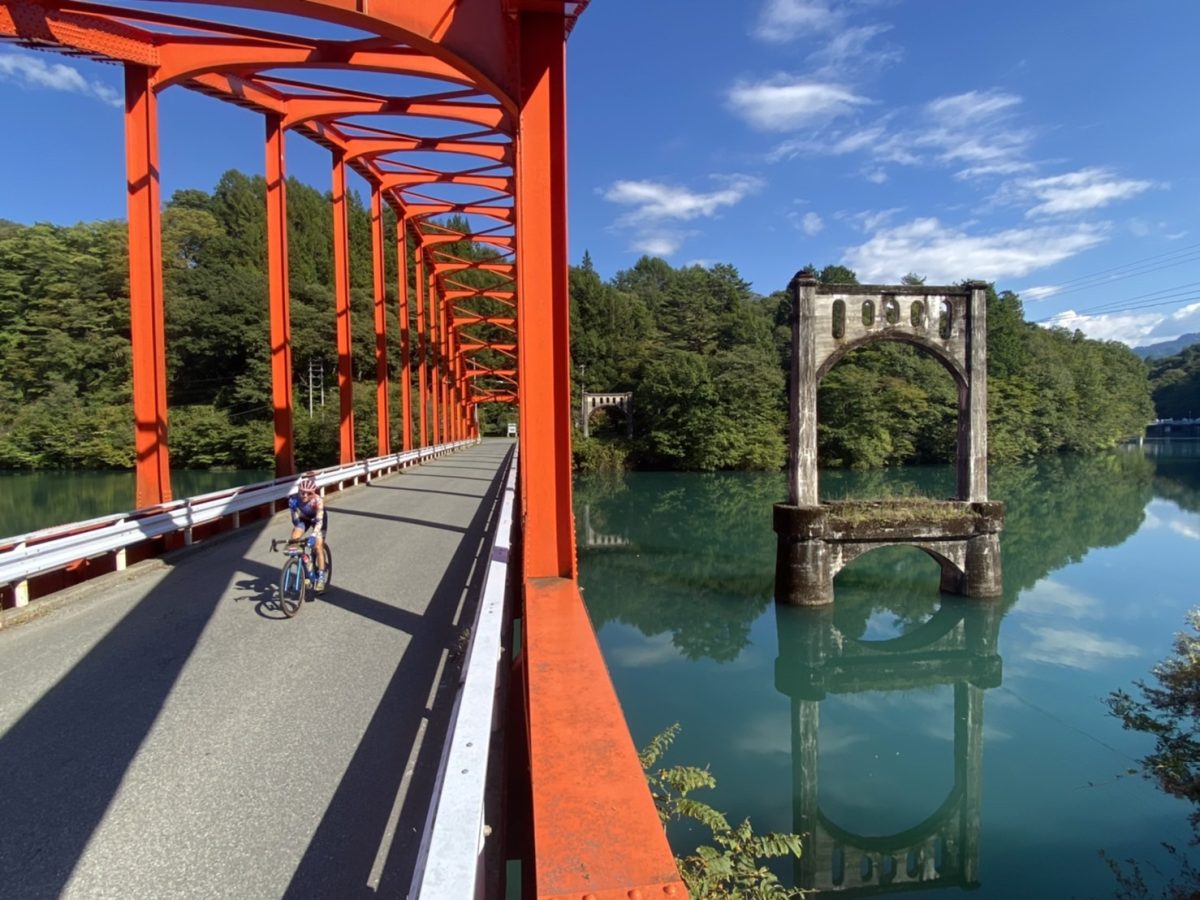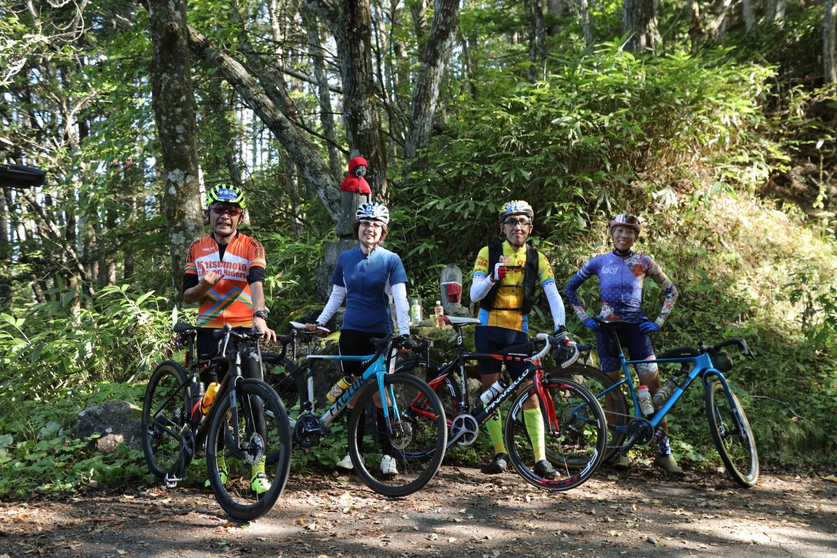 最後は御嶽山を望む気持ちがいい高原や湖の風景を楽しみながらフィニッシュ地点の日野百草本舗 王滝店へ。竹下佳映さんもついつい景色の良さに寄り道をしすぎてしまい最終走者となってしまったが、ライドを満喫した。