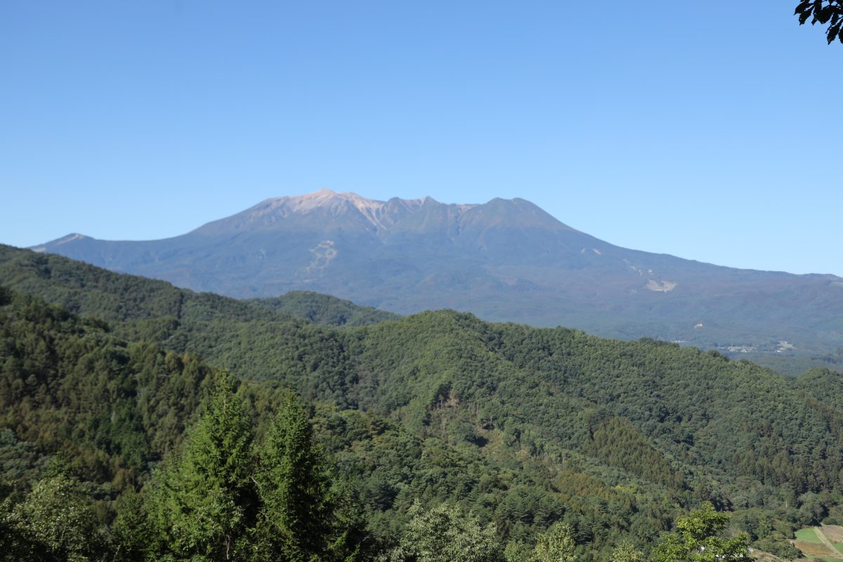 おそばを堪能したら国道361号で九蔵峠へと向かう。九蔵峠からはさらにダイナミックな御嶽の風景が楽しめる。自転車はもちろんだがオートバイ、クルマなど、道を楽しむ趣味人たちの撮影場所になっている。