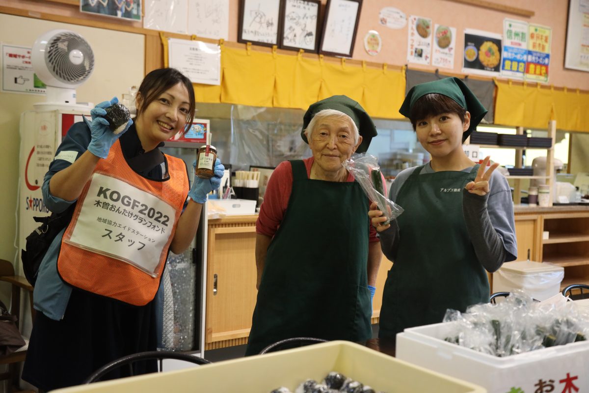 御嶽の上の標高約1800m、木曽おんたけグランフォンドの最高地点だ。開催は10月初旬だったが天気もよく、参加者たちは気持ちのいい高地で食事を楽しむことができた。絶景のなかでの絶品グルメ、もう最高の一言だ。