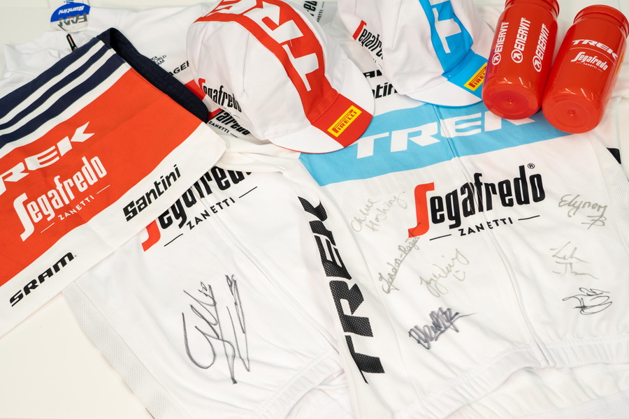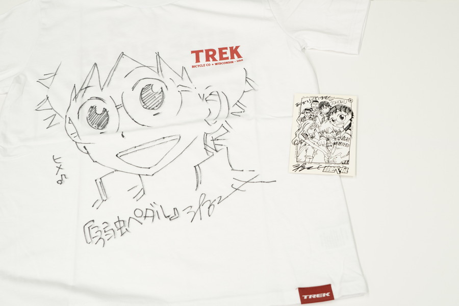TREK-Segafredoに所属するジュリオ・チッコーネ選手のバイク「Domane RSL」、サイン入りジャージ、チームヘルメットや、TREK-Segafredo Women’sチームのサイン入りジャージセットに加え、自転車競技を題材にした本格的なスポーツ漫画「弱虫ペダル」の作者である渡辺 航先生サイン入りTシャツを出品致します。