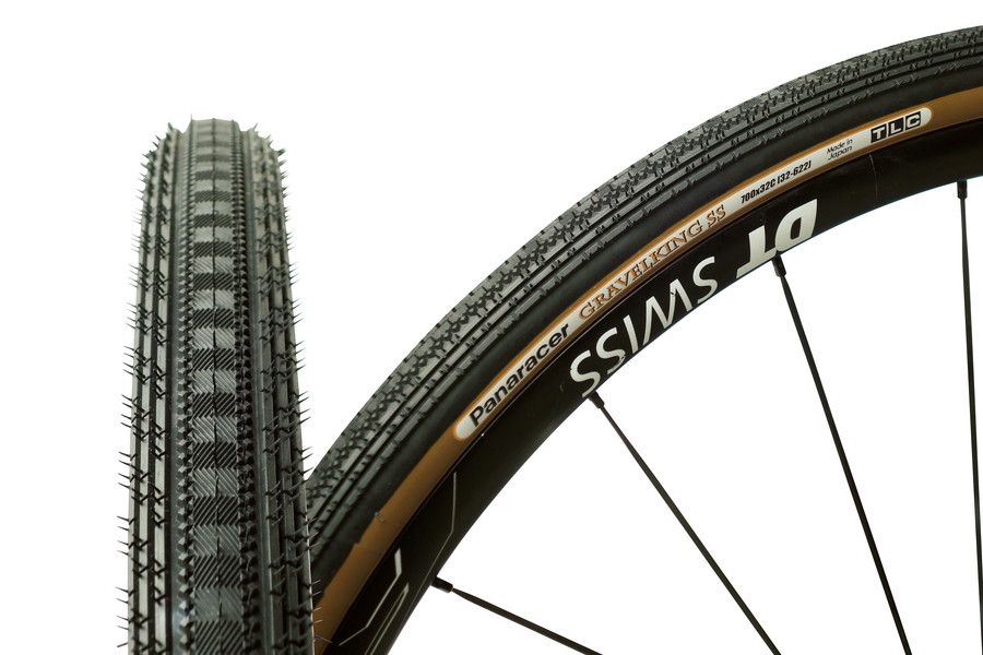 グラベル入門からレースまで多くのライダーが推す名グラベルタイヤ「パナレーサー・グラベルキングSS」。タイヤ幅やトレッドパターンなど数多くのラインアップを誇る。今回は32CのSSタイプ、ブラウンを選択。