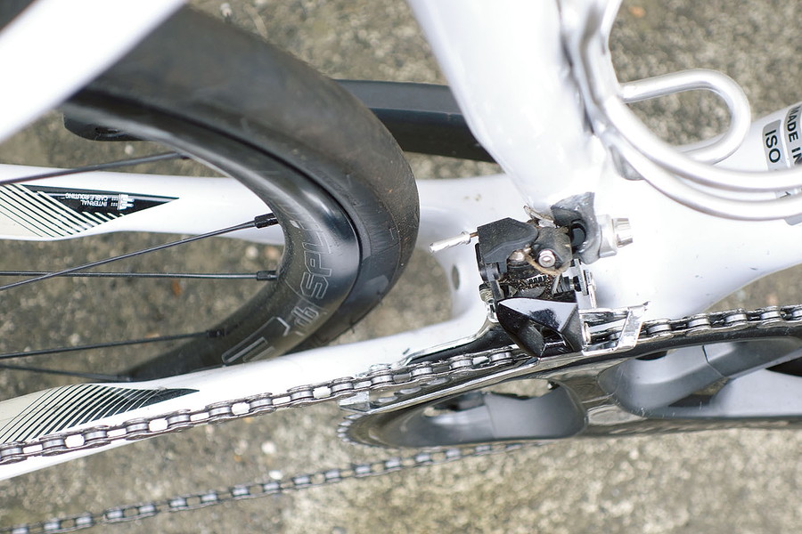 フレームの設計としては、35Cのタイヤ幅にも対応している。26Cを履いた状態だが、フレームにはかなりのクリアランスが残されているのがわかる。