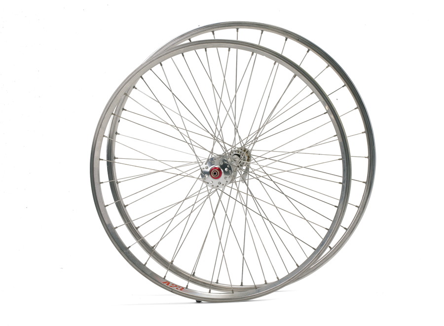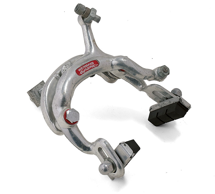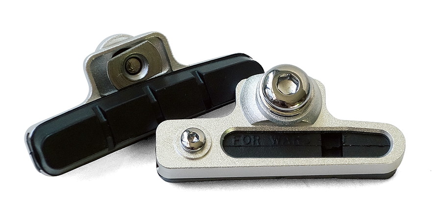 問題はブレーキだ。ラージアーチのブレーキを使ってシューがリム面に当たるようにする。リアはそれでも数㎜足らず小径車のカスタムなどで使われるオフセットしたシューを導入。許せるレベルの制動力を発揮できるように。