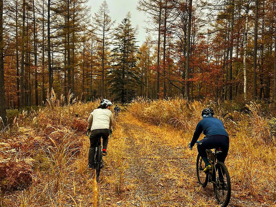 また、なんといってもその後のグラベルの下り区間が最高でした。「これこれ! これが欲しかったのよ!」と参加者が口をそろえて言う、道幅が広く引き締まったグラベルのダウンヒル。初日のハードなコースも楽しかったですが、ハイスピードで下れる引き締まった路面もやはり気持ちよく、グラベルって本当にバリエーションが豊かだなと、その楽しさや妙味をかみ締められる下りでした。