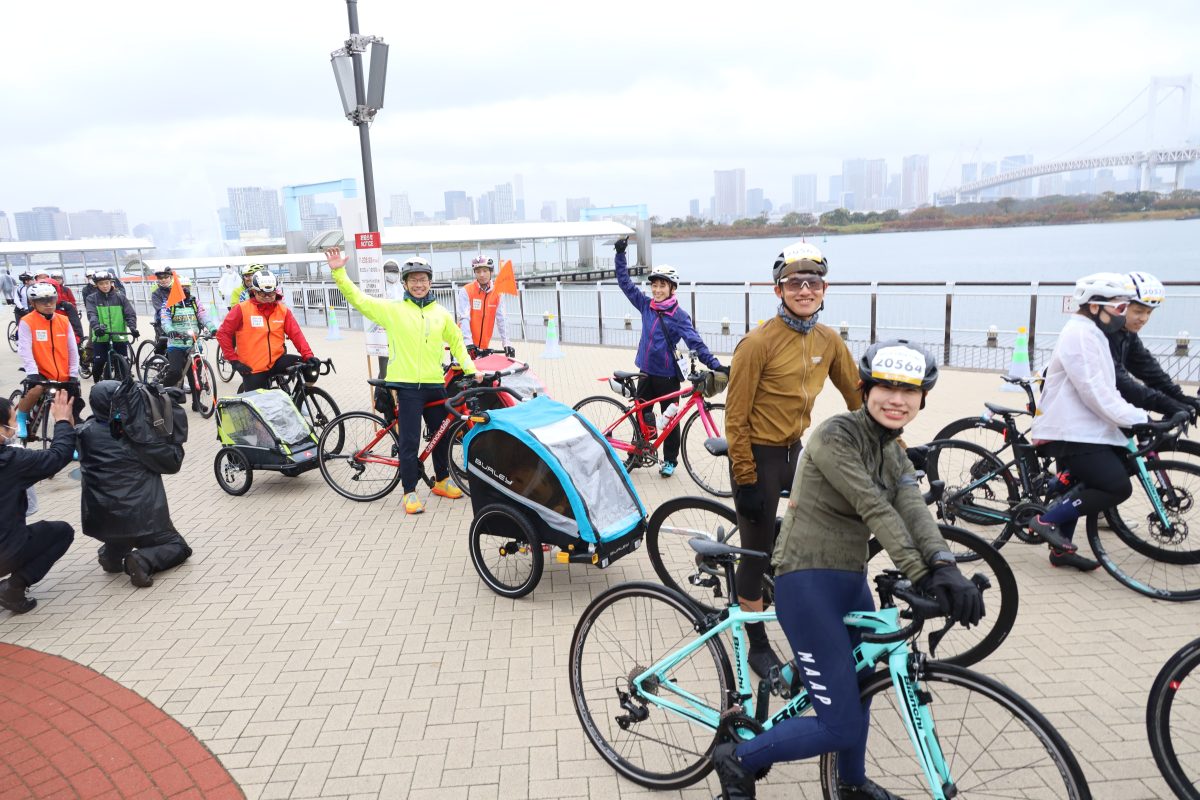 「橋の上を走れて楽しかったです。いい意味で距離も少なくスピードものんびり、アップダウンはあったのですが、トレーラーに乗せた子どもと一緒に参加できたこともうれしかったです。スタートのタイミングから一緒に走ることになったまわりのライダーの方々とはもちろん、沿道警備のスタッフさんたちの声掛けもあって、走行中はイベントの一体感が感じられました。あいにくの天気でしたが、子ども乗せトレーラーでの参加が認められたことも有意義でした。日本では自転車でトレーラーを引くことは法的には問題ないものの、ルールの解釈に難しい点もあり、微妙な反応を受けることもあります。でも、こうして堂々と走ることができ、トレーラー使用は常に問題がないことが示せたのも大きかったです」