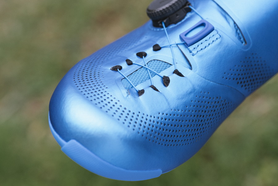 松井:余談ですが、RC903のボアダイヤルの一つはアッパーが上から覆いかぶさる側に付いています。甲高の人も足入れやしやすく、ダイヤル締めつけ時は甲の低い人よりアッパーが上がり気味になるものの、それを見越して素材の大きさをベストな値にしています。どなたでもしっかりとしたフィット感を得られます。