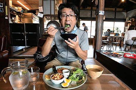 通りはばあちゃんしか歩いてないのに、中は若い女性でほぼ満席。むさい男性客は自分だけ。地元の野菜をたっぷり使ったヘルシーなランチをいただく。昨日の缶詰とアルファ米のディナーとは大違いだ。