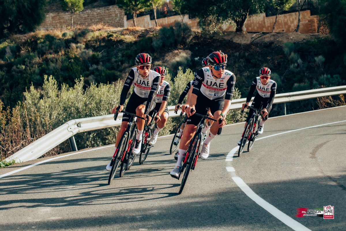 今季より、イタリアのサイクルアパレルブランド「ピセイ」とのパートナーシップを結んだ。袖が黒へと変わり、一層UAE色に近いものとなった印象だ。このオフ一番の補強を果たしたチームともいえ、グランツールの総合を狙うアダム・イェーツ(イギリス)や、一発のあるティム・ウェレンス(ベルギー)、クライマーのジェイ・ヴァイン(オーストラリア)らが合流。ツール復権を目指すタデイ・ポガチャル(スロベニア)らとの共闘が大いに見ものだ。そして、バイクは大注目のコルナゴ・V4Rsだ!