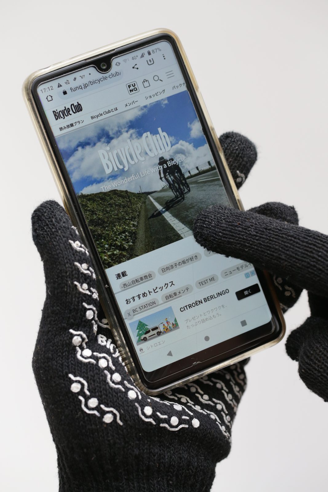 特別付録「あったかライドグローブ」 冬場のライドで欲しいグローブ。チェーンをイメージしたオリジナルパターンの滑り止めゴムを採用し、滑りにくくなっているのが特徴だ。ぜひこのグローブを使ってライドへ出かけてほしい。