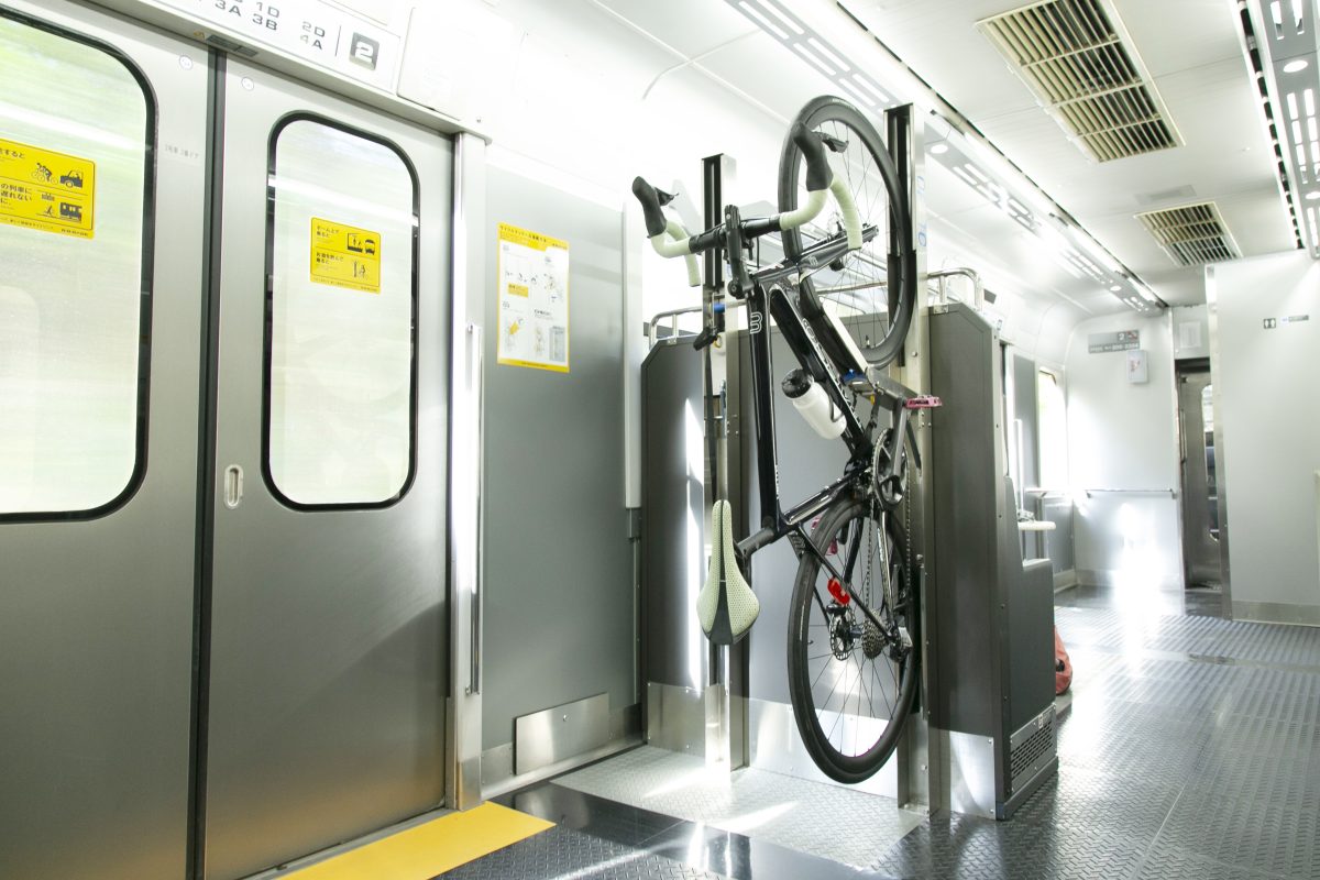 輪行の手間をかけることなく、自転車をそのまま車両内に持ち込めるのがサイクルトレイン。