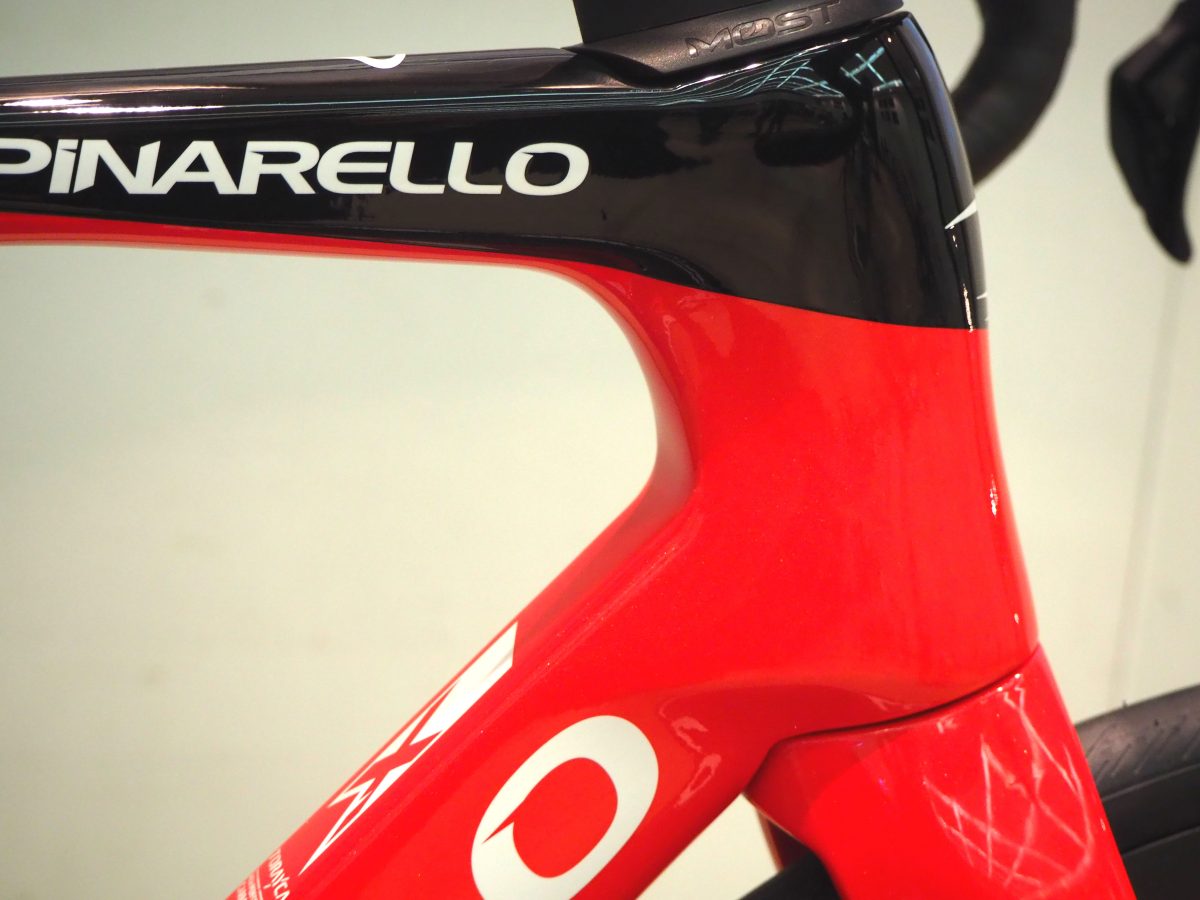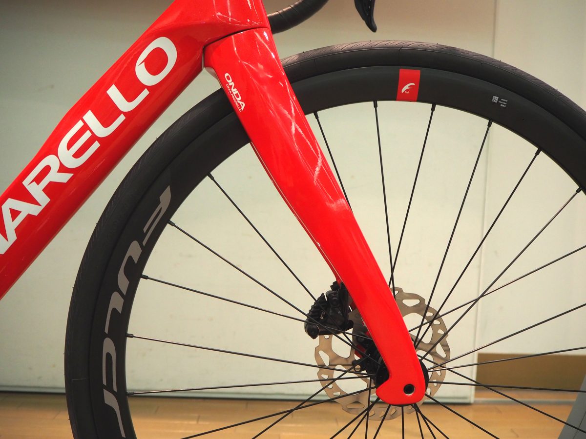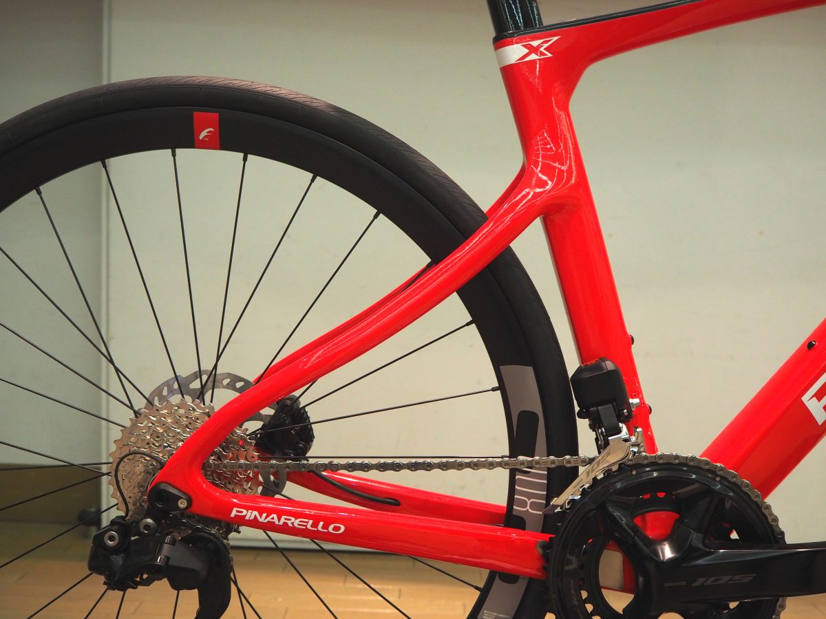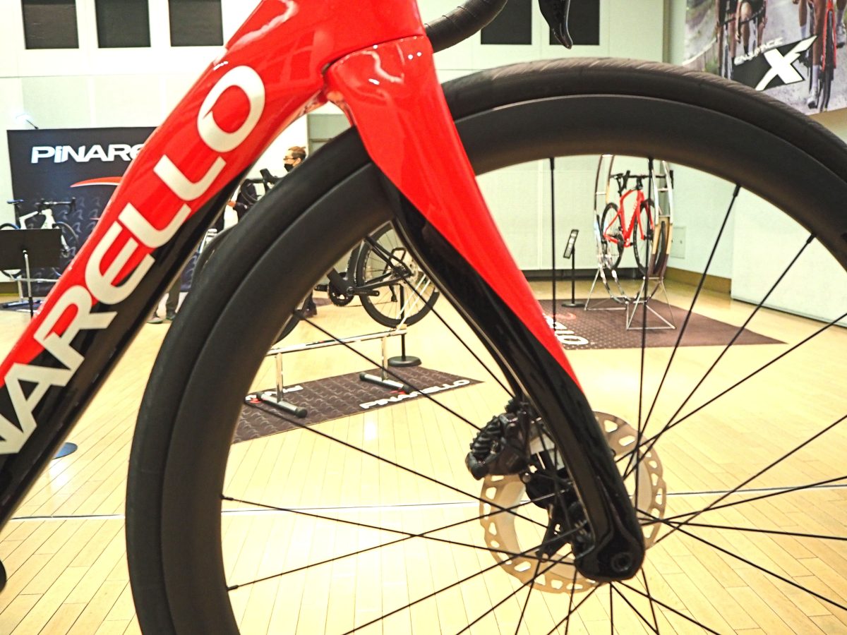 フロントフォークは両モデルともピナレロらしい曲線を描いているが、Xのほうがより曲がりが強く、ドグマFに近い形状だ。タイヤクリアランスはFシリーズが最大30mmまで、Xシリーズが32mmまでとなる。