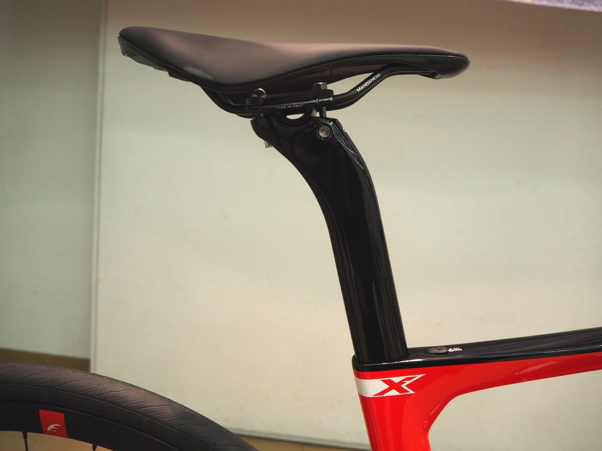 シートポストは似ているが、Xのほうが横幅も縦幅もある。Fのほうが細くエアロな印象を受ける。両方ともクランプは内蔵型でトップチューブ上から六角レンチを差し込んで調整可能。