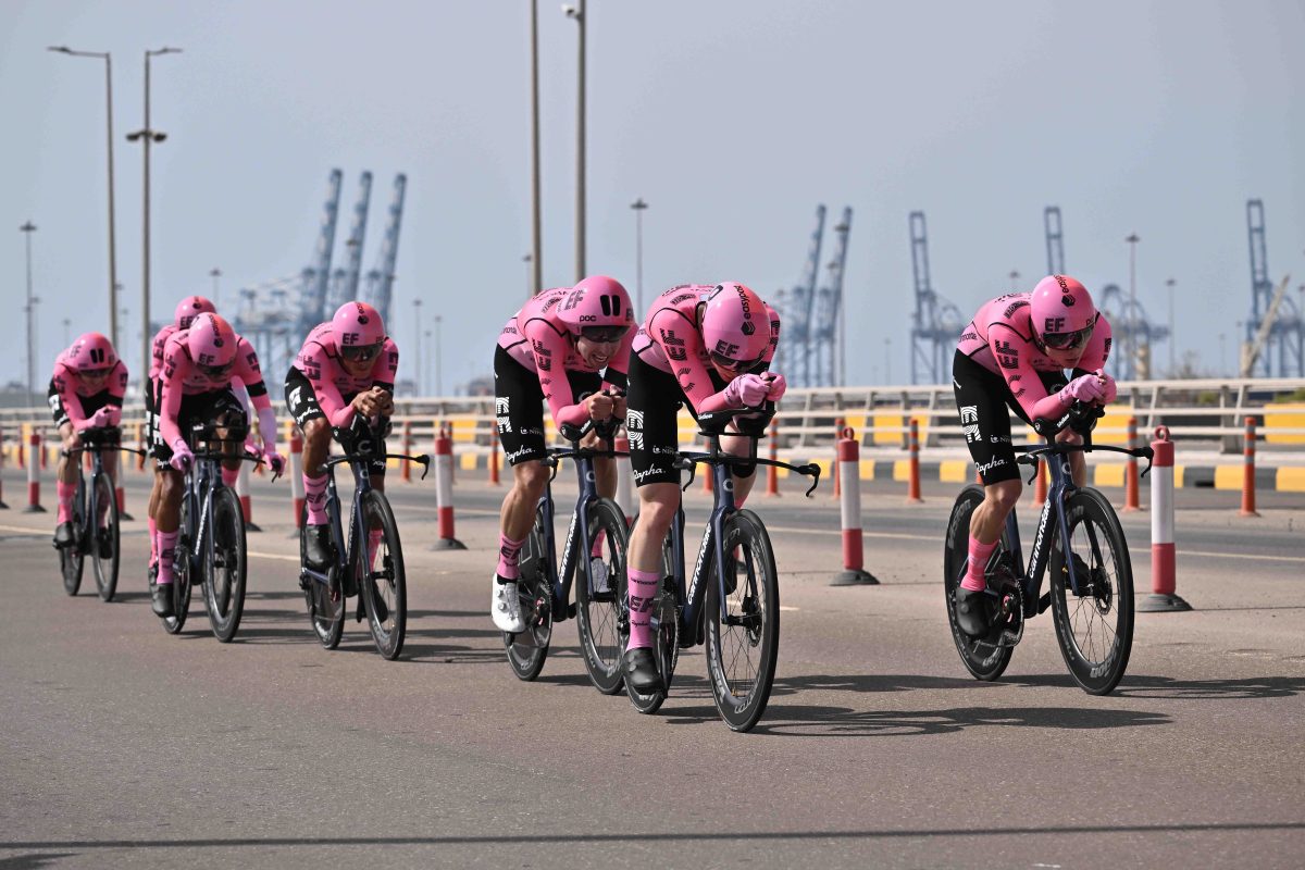 そこからしばらくはトップタイムをマークするチームが現れなかったが、7番手スタートのEFエデュケーション・イージーポストが流れを変える。