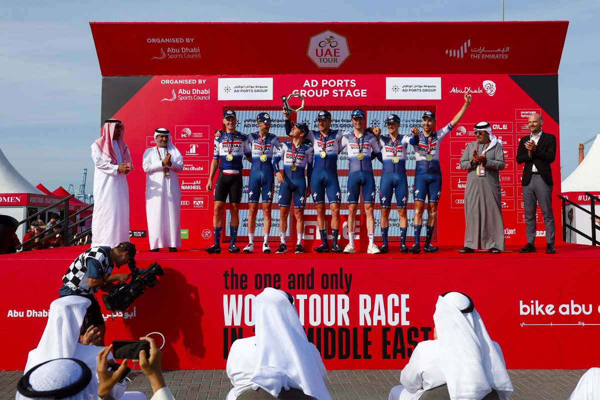 大接戦のチームTTを制したのはスーダル・クイックステップ 総合リーダーはプラップに|UAEツアー