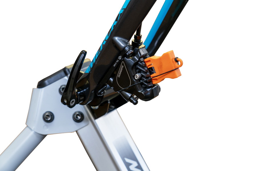 フロントフォークを固定することで安定性を高め、バーチャルトレーニングに集中できる環境を構築。
