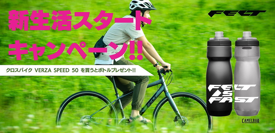 クロスバイク購入でロゴ入りボトルがもらえる「FELT新生活スタートキャンペーン」
