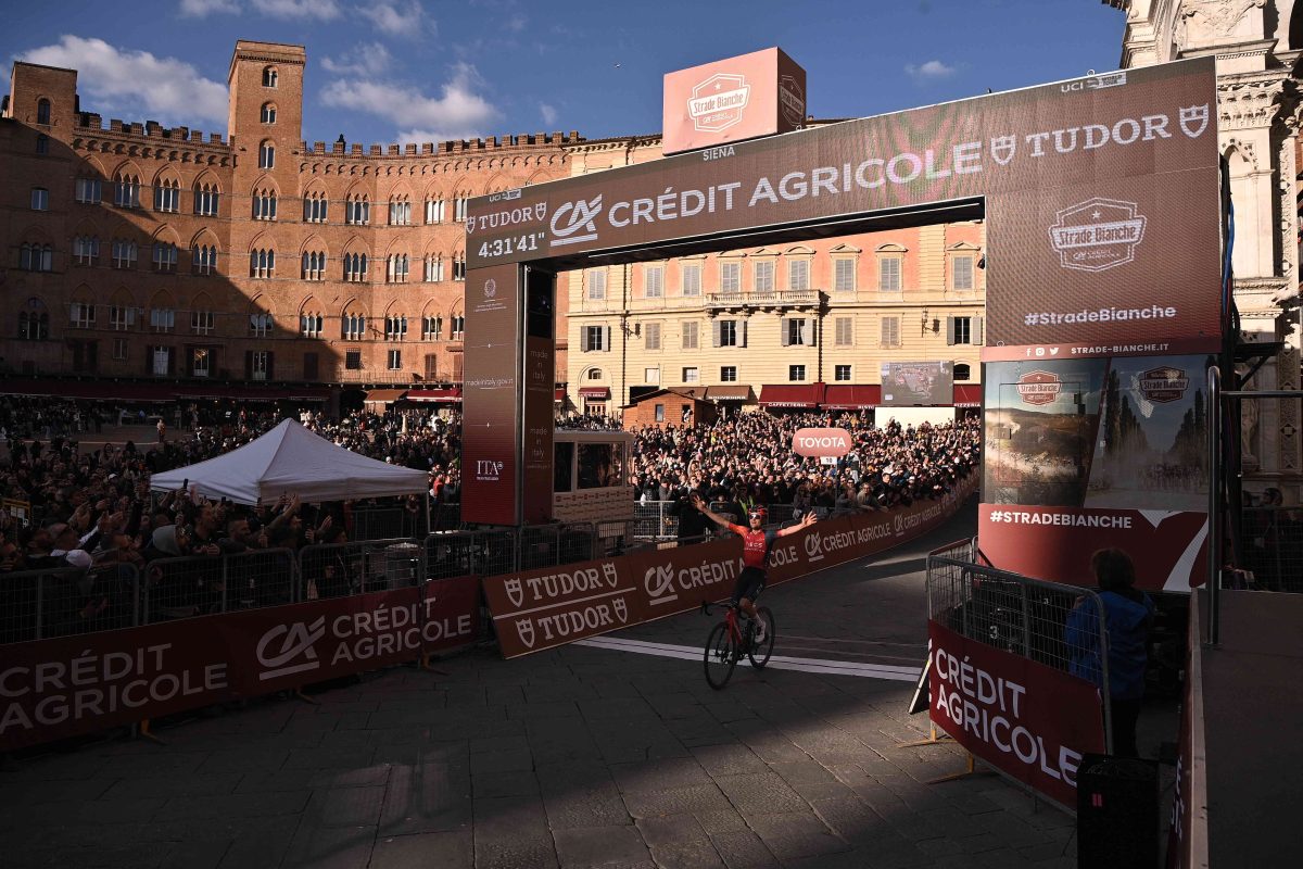 ピドコックが独走逃げ切りで初優勝! 残り51kmで集団飛び出し、最後の20kmを単独走|ストラーデ・ビアンケ