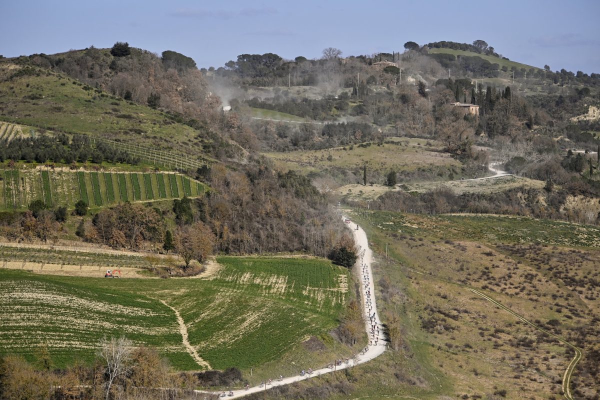 シエナのメディチ要塞前をスタートしたプロトンは、全行程184kmを走って再びシエナへと戻ってくる。この間、丘陵地帯を行き、その途中では“白い道”と言われる未舗装区間を駆け抜ける。“白い道”は全11セクション・総距離63km。コースの3分の1がグラベル区間になる。また急坂も多く、獲得標高は3200mにのぼる。