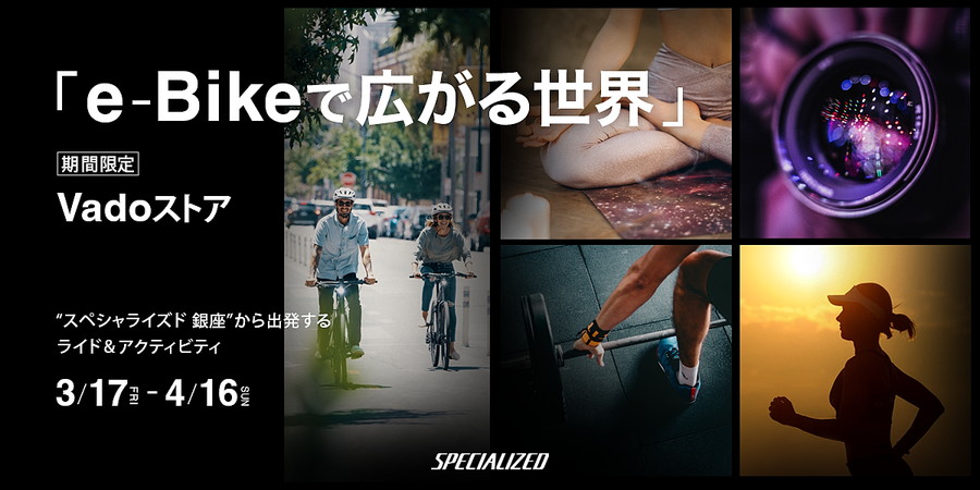 3月17日から4月16日の間、スペシャライズド銀座が「e-Bikeで広がる世界」をテーマに店内のディスプレーを一新。期間限定のVadoストアとして、Vadoの魅力を存分に体験できる各種イベントを実施する。以下、プレスリリースより。