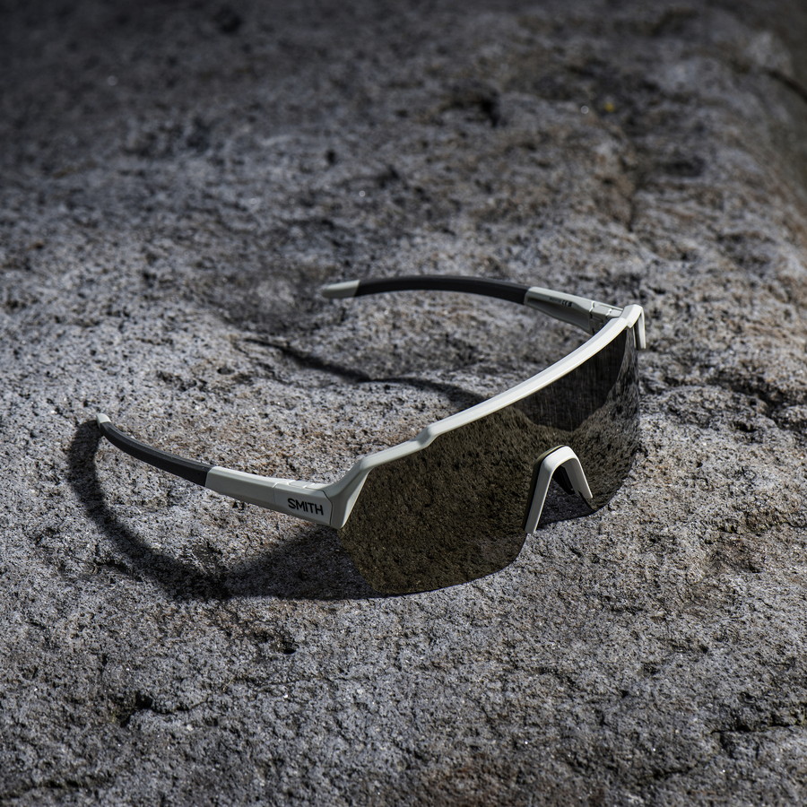 Smithらしいスタイリングのニューモデル。大ぶりレンズは日本人の顔にマッチすると昨今のトレンドを喜んでいるが、このモデルもまさにそう。レンズが大きいアイウェアはフルリムにすると重量がかさんでしまうが、Shift Split MAG™はハーフリムにすることでそれをうまく解消している。レンズ上部にはスリットが入り通気性を確保しているのと、この上部のフレームが一段頭頂方向に高くなっていて、ヘルメットとの間に生じるマユ毛スペースを埋めてくれる。乗れているサイクリストにオデコの出ている者はいない。小さいスペースだが、ここにこそライダーのスタイリングの神は宿る。