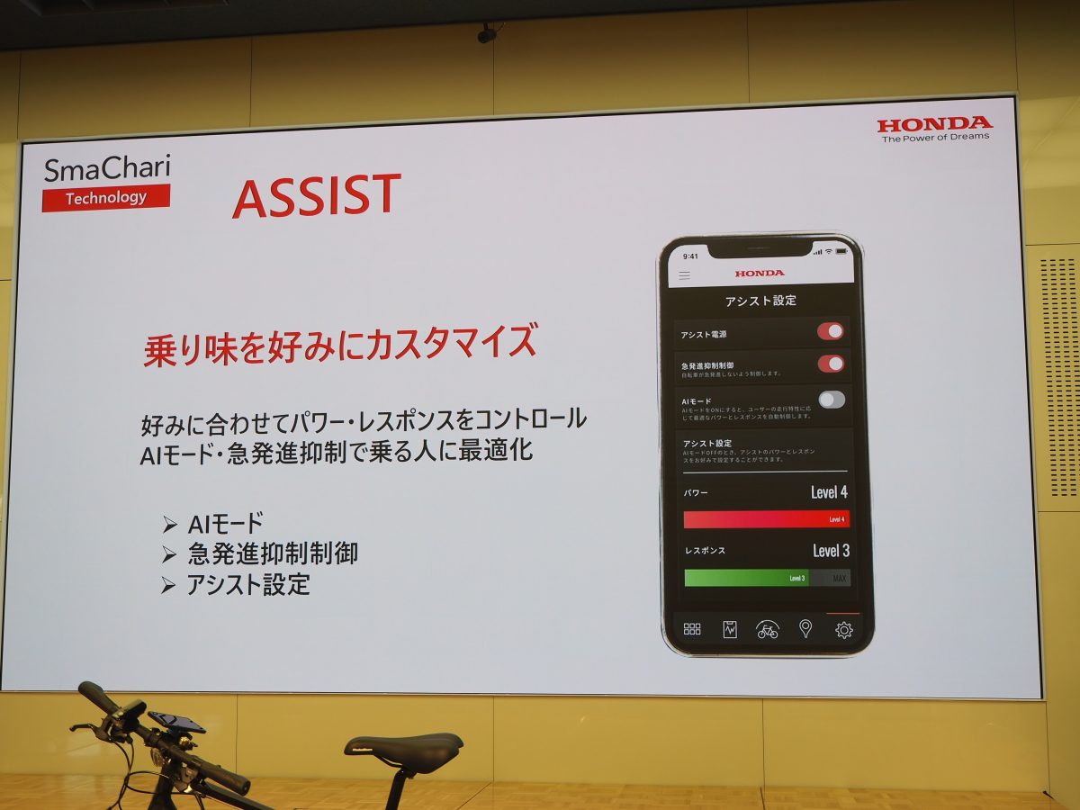 AIモードを搭載しつつ、スマートフォンからきめ細やかなアシスト出力調整を可能に。予期せぬ急発進を抑制するなど、一人ひとりのユーザーにあわせたアシスト性を提供。