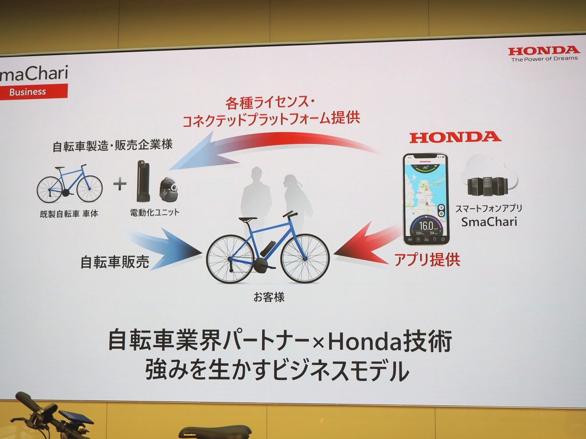興味深いのはHondaはあくまでもSmaChariのアプリ機能を、自転車業界とユーザーにソフトとして提供することにとどめ、既存の自転車製造メーカー(ハード)への提供を将来的に行っていく予定だということ。つまり今後、さまざまな自転車への「+αで電動アシスト化」を可能にすることを想定しているのだ(現時点では後付けユニット&モーターでの単体販売はない)。