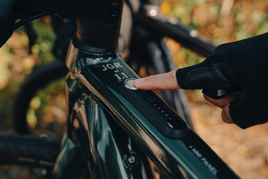 新大容量360Whバッテリーを完全内蔵したe-グラベルロードモデル「JGR1.1(ジェイジーアール)。インターナルバッテリーによりフレームは軽量&高剛性化され、スポーツバイク本来のフレームの美しさも両立しています。新型HMI、新型バッテリー&充電器、新型トルクセンサーを採用。なめらかかつ力強いアシストで、スポーツeバイクとして高いパフォーマンスを発揮します。
