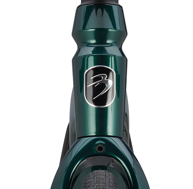 ・eバイク最先端の、BESV Europe Teamによるバイクデザインの象徴となるアイコニックなロゴが、ヘッドバッジとしてヘッドチューブに取り付けられています。