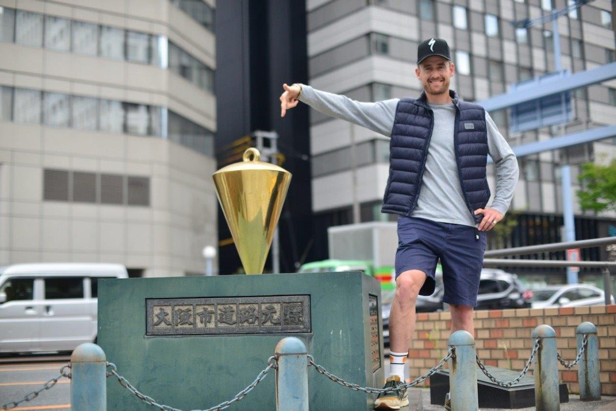 スタート前のジャックに話を聞く機会があるとのことで、早速出かけて大阪のカフェで話を聞く。数々の過激な記録を打ち立ててきたジャックが、大阪→東京という1日のルートを選んだのはなぜだろう?