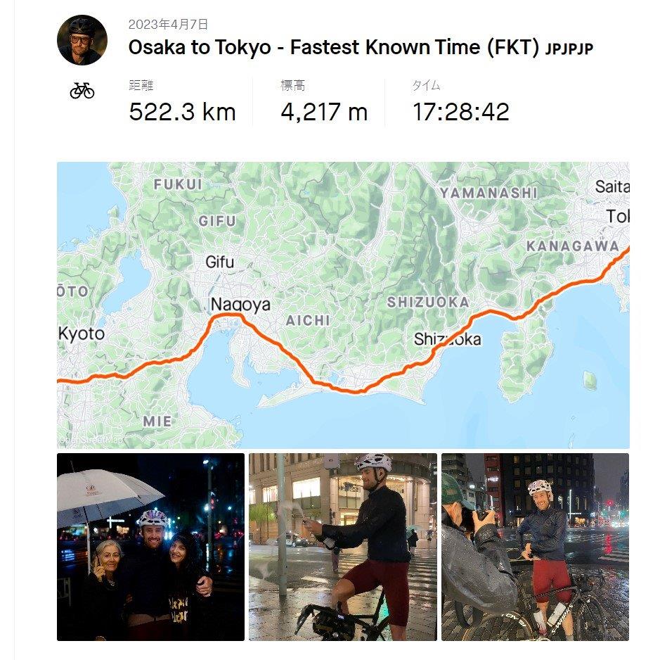 そしてジャックは東京都中央区までの520kmを、18時間28分(走行時間を除いたネットタイムは17時間28分)で走り切り、FKT=Fastest Known Timeを達成した。走行後のジャックにコメントをもらった。