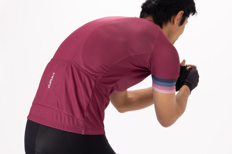 生地に柔らかな再生ポリエステルを85%使用することで、エアロ性能と通気性を両立した。フラットな仕上がりの滑らかなネックシームが摩擦を軽減する。またジャージのデザインを邪魔しない、カムロック式の隠しジッパーを採用。快適さとエアロ性能のために袖口は長めにデザインされる。裾部分の裏側にはジャージのずり上がりを防止するシリコングリッパー付きボトムバンドを採用。伝統的な和をイメージしたデザインも魅力だ。