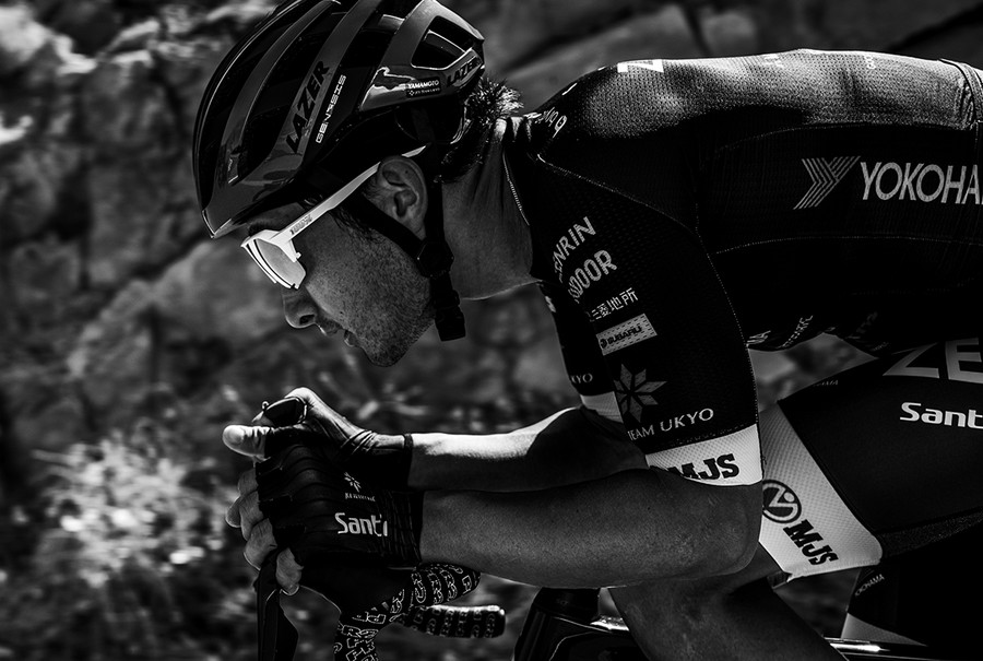 チームに守られながら隊列の前方を悠々と走る山本の姿はまるで“王者の凱旋”。そしてレース終盤、20名に絞られたプロトンの前方に宇都宮ブリッツェン阿部嵩之、チーム右京相模原の小石祐馬らスピードマンが集まってくると、今度はイエロージャージの山本みずからが先頭に立った。ハンドルに低く頭を埋めた究極のエアロフォームで、高出力のギヤを踏み切る。その強烈なスピードに番手に着く選手たちの顔が一気に歪む。