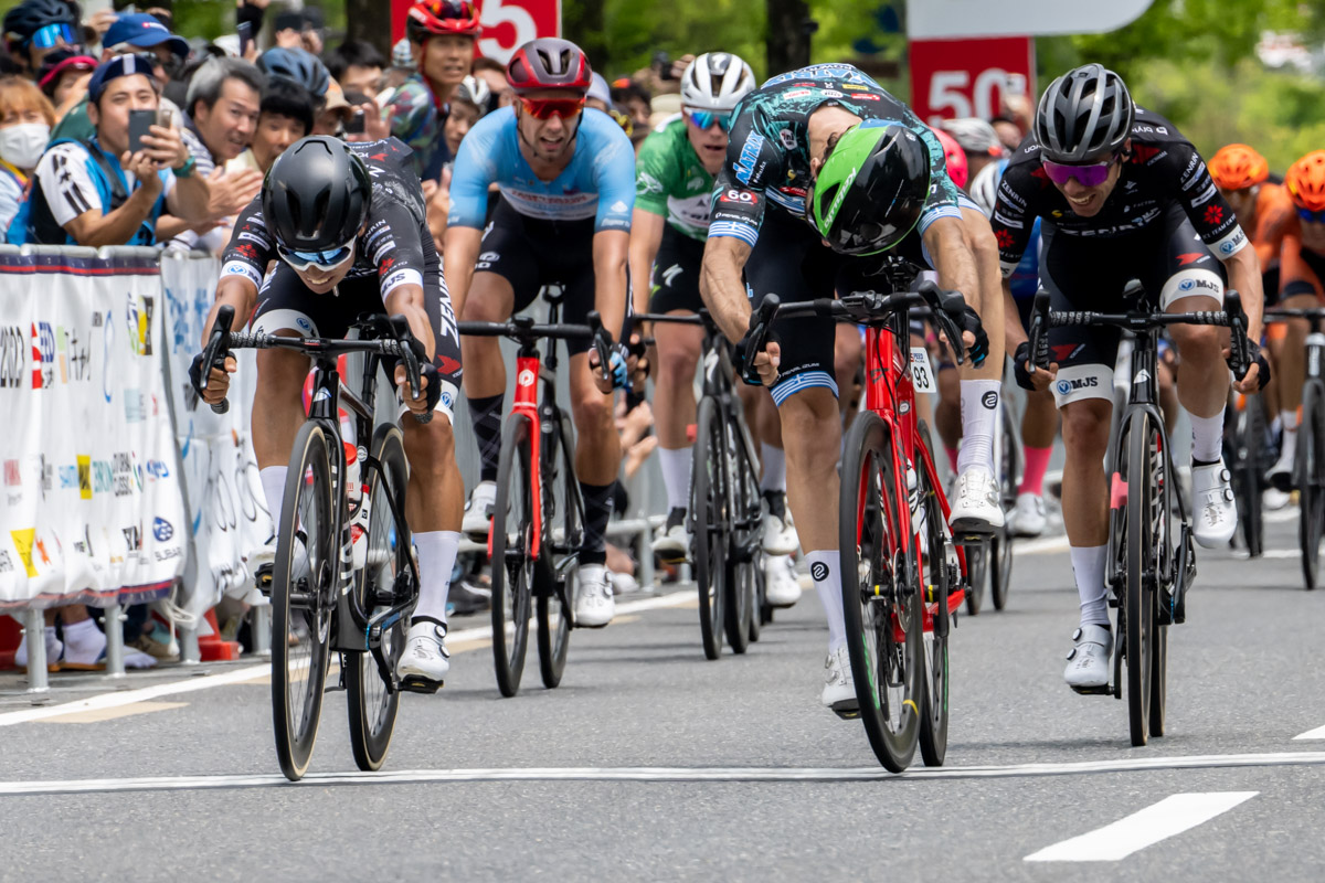 岡 篤志(JCL TEAM UKYO)を先頭に集団が姿を見せると、前日のクリテリウムで優勝したゲオルギオス・バグラス(マトリックスパワータグ)が岡のロングスプリントの後ろから残り50mを切ったあたりで横に並びかけると、そのままの勢いで岡をパスし、前日のクリテリウムに続いて2日連続での優勝を飾った。