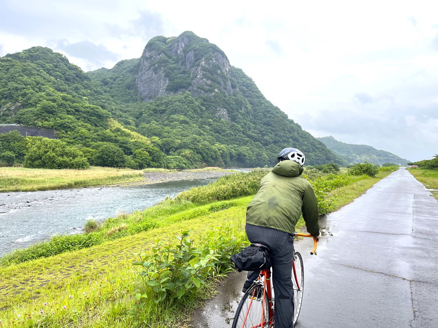 狩野川と城山。伊豆の有名なジオサイトのひとつ。プラス富士山が見えればなあ、というところだけど。河川敷の道は走りやすく、出会ったライダーたちとおしゃべりしながら楽しくライドしてました。