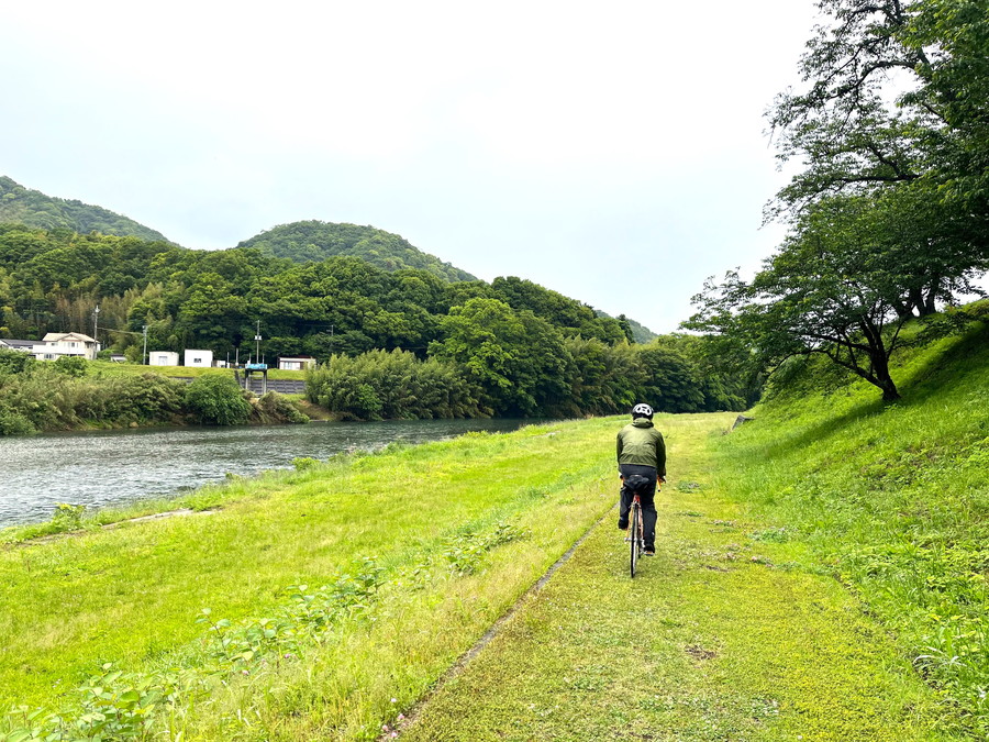ワサビ70のグラベル区間は、河川敷の芝生コース。ストラーダビアンケならぬ、ストラーダーヴェルデ(緑の道)!