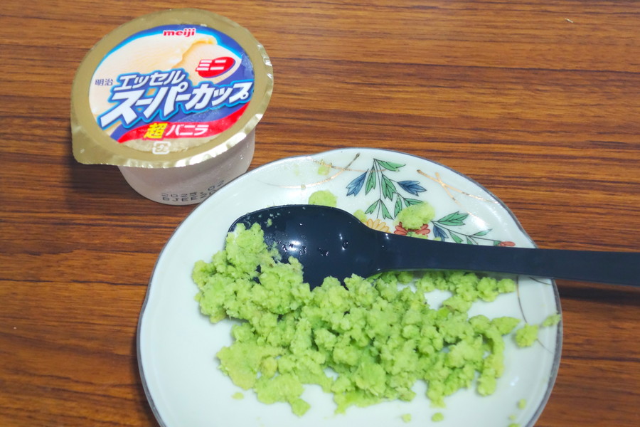 次の季多楽エイドステーションでは、名産のワサビが提供された。おろしたての生ワサビをアイスの上にトッピングして食べる。これが想像の上を行くベストマッチ!