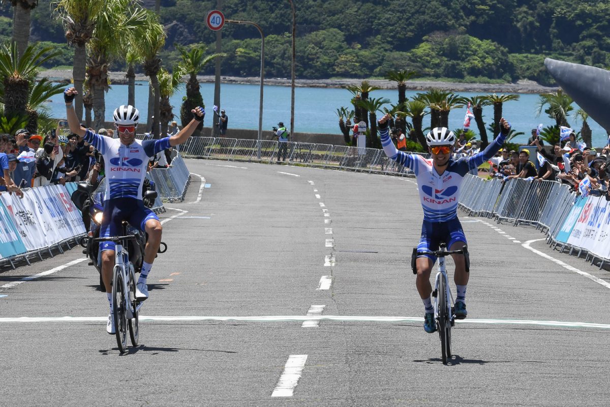 ツール・ド・熊野(UCIアジアツアー2.2)第2ステージが和歌山県太地町で開催。104.3kmで争われたレースは、すべてのスプリントポイントを通過したのちに集団から飛び出した山本元喜とトマ・ルバ(ともにキナンレーシングチーム)がそのまま逃げ切り。最後は山本が先着してステージ優勝をつかんだ。