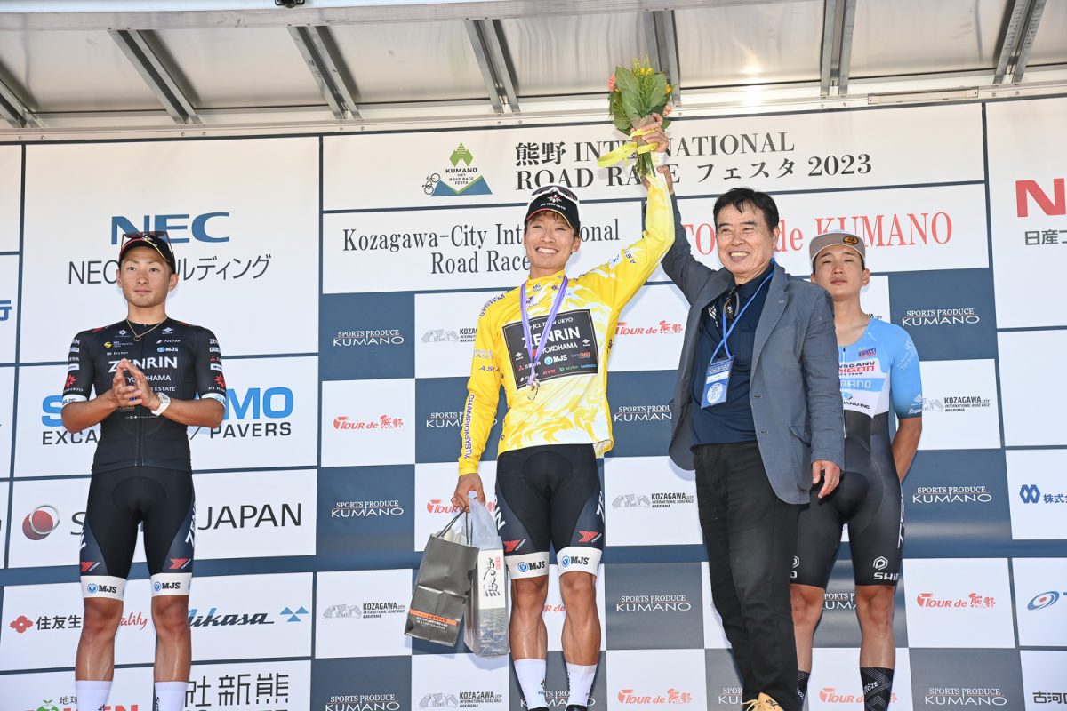 これにて山本 大の個人総合優勝かと思われたが、最終局面でバイクトラブルに見舞われていたため、メイン集団から約1分30秒遅れて姿を現した。救済処置が施されたため、集団と同タイム扱いとなるも、ステージ着順で上回る岡が繰り上がりで勝者に。チーム内でジャージを受け渡す結果となった。個人総合優勝を果たした岡は「昨日のステージで1、2フィニッシュを飾り、今日も強いチームに守られて結果を残した。世界で戦うチームに所属しているので、ツール・ド・熊野とツアー・オブ・ジャパンで力を見せることができてよかったと思う」と表彰台でコメント。