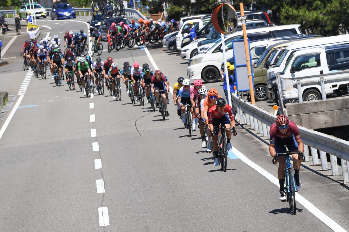 3周目に突入すると愛三工業レーシングが先頭に浮上。コース後半のワインディング区間で奇襲に出ると集団の息遣いが荒くなる。再びキナンレーシングチーム、EFエデュケーション・NIPPO ディベロップメントチームも有効な仕掛けを見せると集団はさらに活性し、メイン集団は一気に40名ほどに。