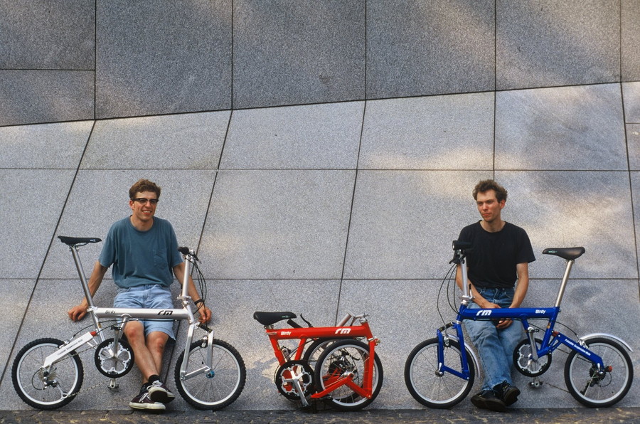 主力商品ともいえる、フォールディングバイクの雄「バーディー」。ドイツr&m社が手掛けたモデルで、1995年にデビューし、2000年代のミニベロブームを生んだ名機種。ドイツの名門ダルムシュダット工科大学出身のマーカス・リーズとハイコ・ミューラーの2人の自転車好きが作り上げた。r&m(リーズ&ミューラー)とは2人の名前からとった社名だ。