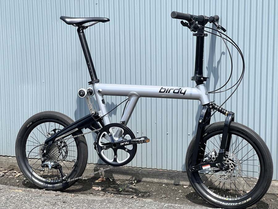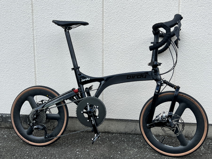 こちらは進化を続ける、ハイドロフォーミングのモノコックアルミフレームを採用したモデル。ロードバイク化のカスタムで、10kgを切る軽さで速さを追求したバーディーだ。