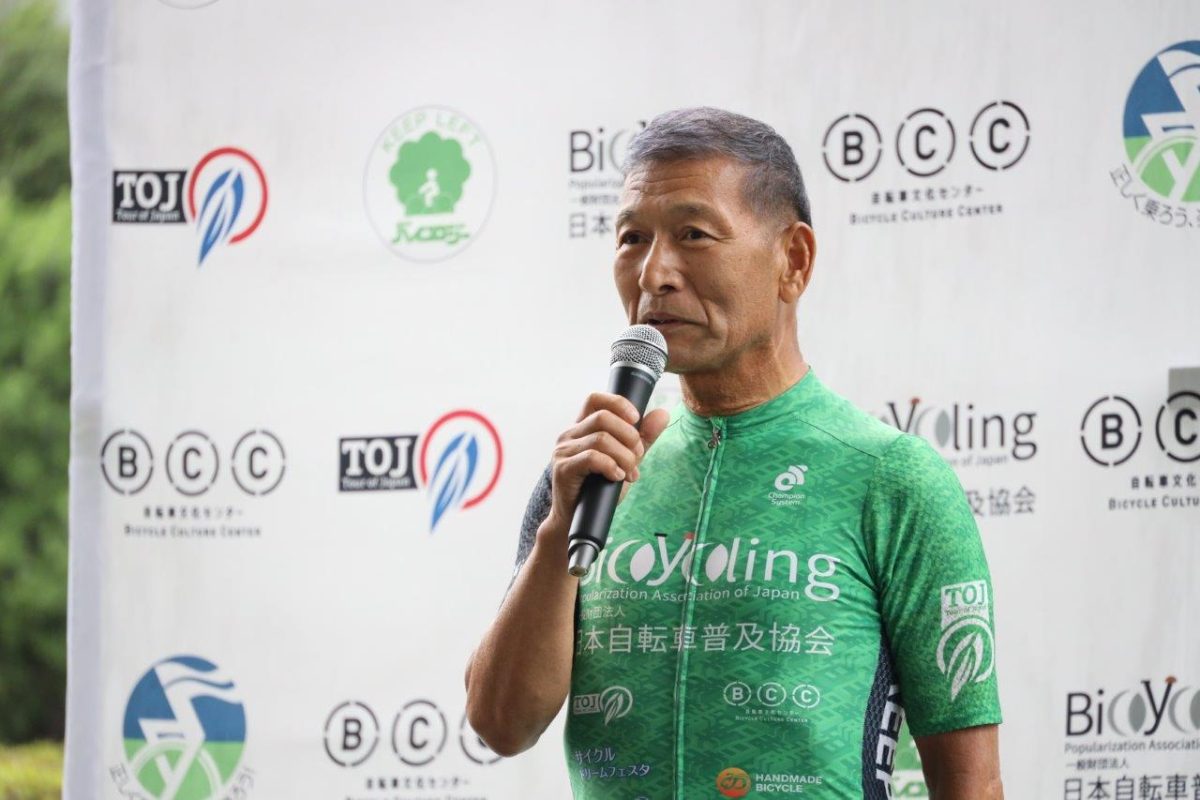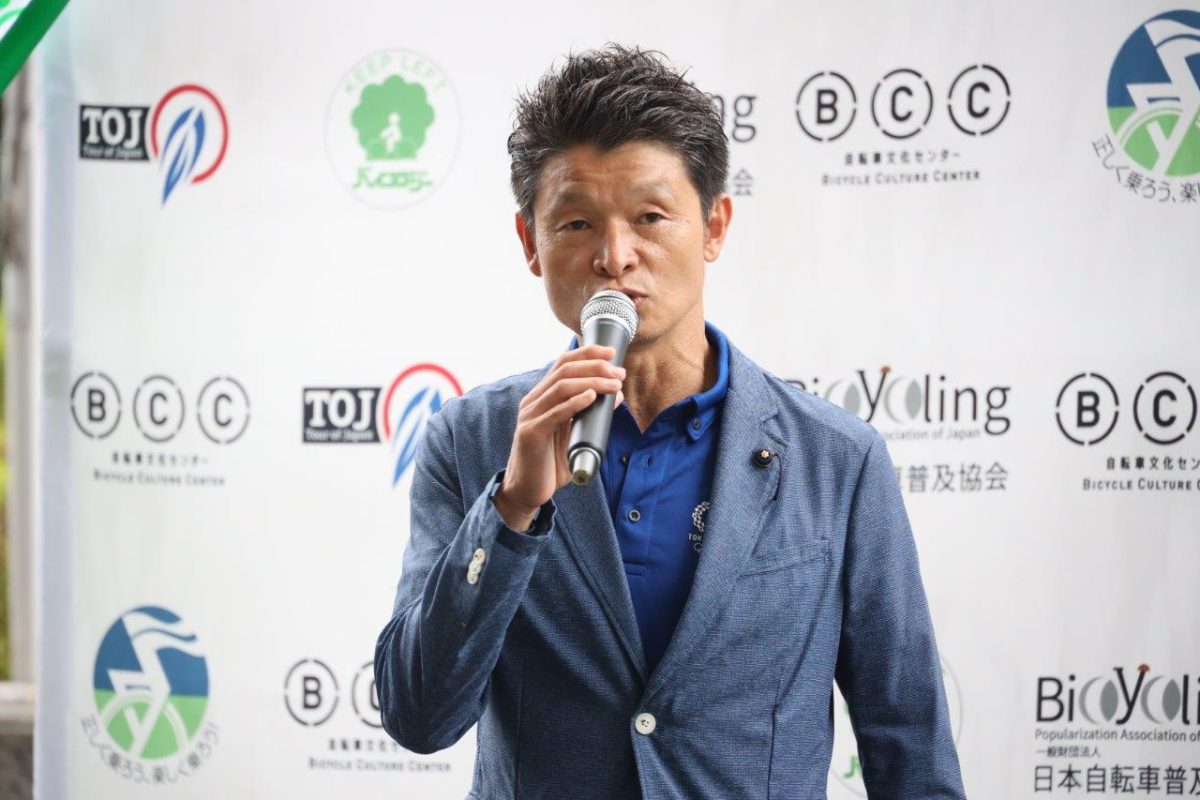 「ついにタンデム自転車解禁というこの日がやってきました。タンデム自転車は視覚障害の方、高齢の方でも楽しむことができるユニバーサルスポーツです。力の差がある親子や夫婦でも楽しめます。そして前と後ろの方が息を合わせないといけないのがタンデム自転車の楽しさであり、難しさです。ユニバーサルスポーツである以上にコミュニケーションスポーツです。ただし残念ながらタンデム自転車はまだ一般的には知られておらず、まだ理解されていないのが現状だと思います。つまり今日、7月1日に我々が公道に出ていくんですが、タンデムならではの難しさと楽しさをどうやってまわりの皆さんに知っていただくかが我々の課題であり、広めていくことが我々の役目だと思っています」