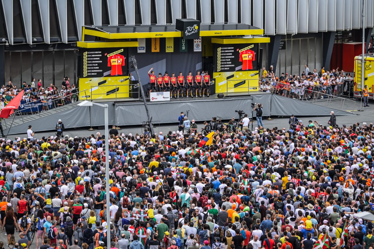 6月29日にビルバオ・グッゲンハイム美術館でチームプレゼンテーションが行われ、出場22チーム・全176選手が大観衆の前で顔見せ。強い雨にたたられる時間帯があったものの、華やかにツールの幕開けを演出し、レースのスタートにつなげている。