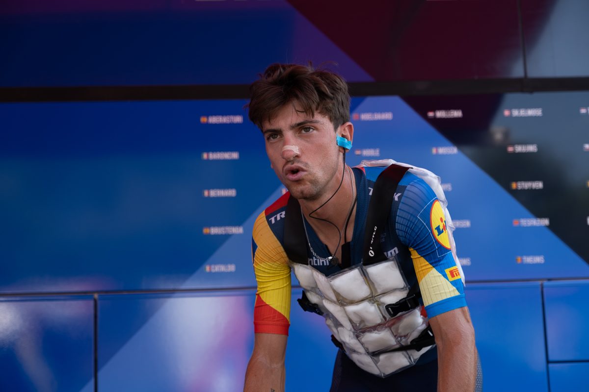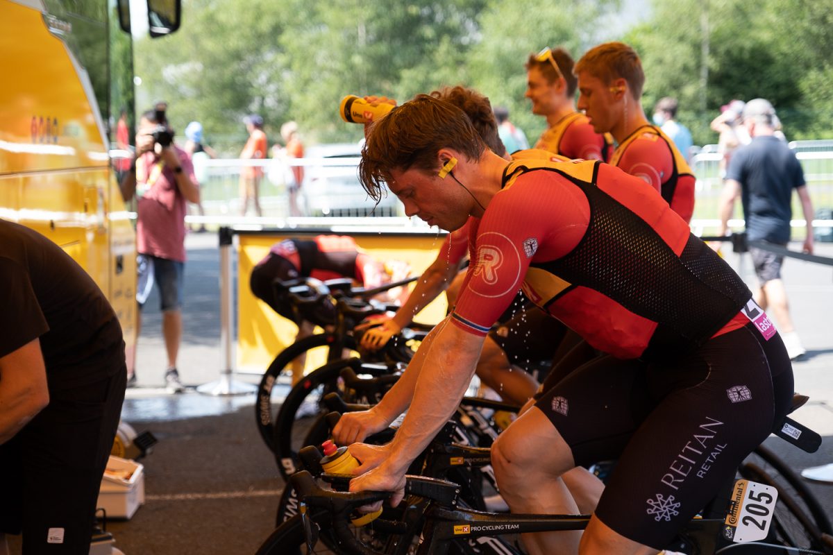 スタートから冷却が追いつかなかったダヴィド・ゴデュ(グルパマ・エフデジ、フランス)もその一人で、程なく失速。結局メイン集団には戻っていますが、約60km苦しみました。ゴデュ、そしてティボー・ピノ(フランス)を抱えるグルパマ・エフデジは休息日時点では継続的に「総合上位狙い」を優先して戦うと発言していました。(ゴデュ個人総合8位+6:01、ピノ個人総合15位 +9:36:第9ステージ終了時点)