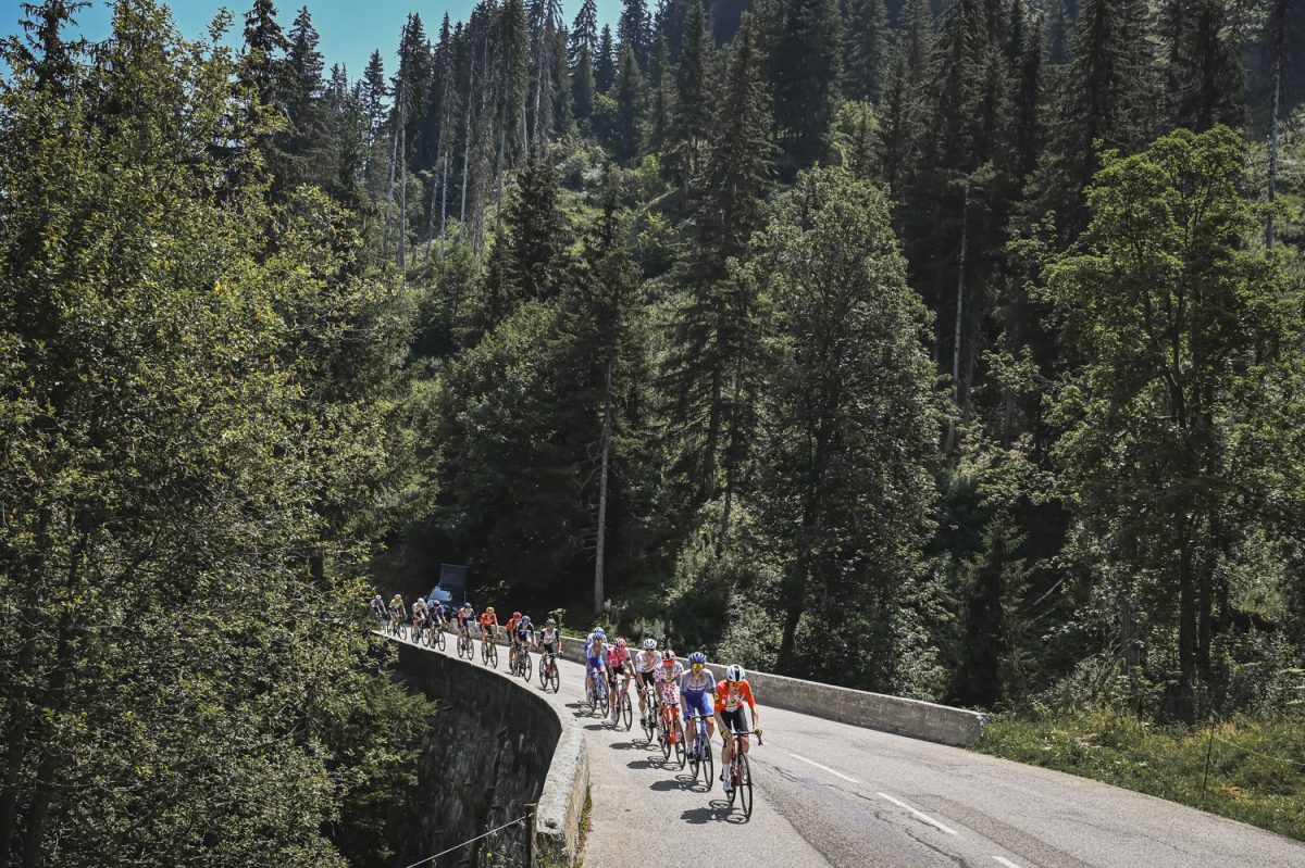 最初のカテゴリー山岳であるコル・デ・セジーで最大18人の先頭グループが組まれかけたが、メイン集団ではティシュ・ベノート(ユンボ・ヴィスマ、ベルギー)の牽引で人数を減らし、前に残った選手たちが先頭グループにジョイン。この上りでは逃げが容認されず、山岳賞首位のジュリオ・チッコーネ(リドル・トレック、イタリア)が1位通過した後は一団でダウンヒルに移った。