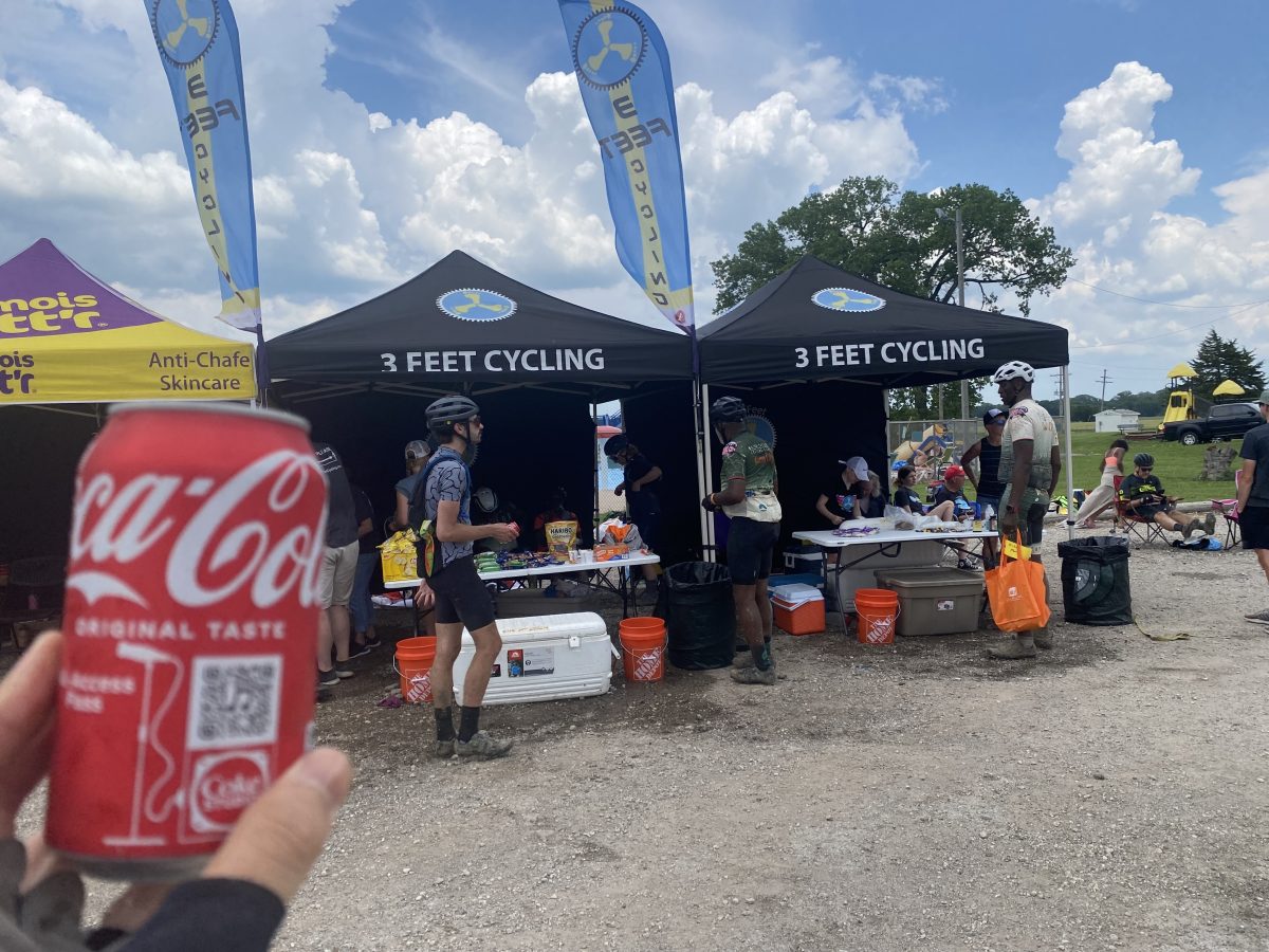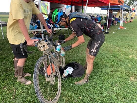 ここで補給についておさらいをすると、基本的にこのアンバウンドグラベルは、「何かあっても自分でなんとかできるように、サポートクルーは自分で連れてきてください!」というスタンスであり、セルフサポートを基本とするグラベルの考えにも沿っている。ここマディソンは外部から補給を受けられるポイント(100マイルではここのみ)に指定されており、ご家族やチームメートなどから補給などのサポートを受けることが可能となっている。