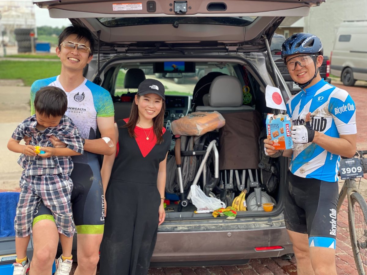 マディソンの救世主となってくれた鈴木さん(左から2番目)と中村さん(左から3番目)。中村ファミリーと鈴木さんはお子さんと共に200マイルに参加している中村龍太郎さんを待っていた。ありがとうございました!