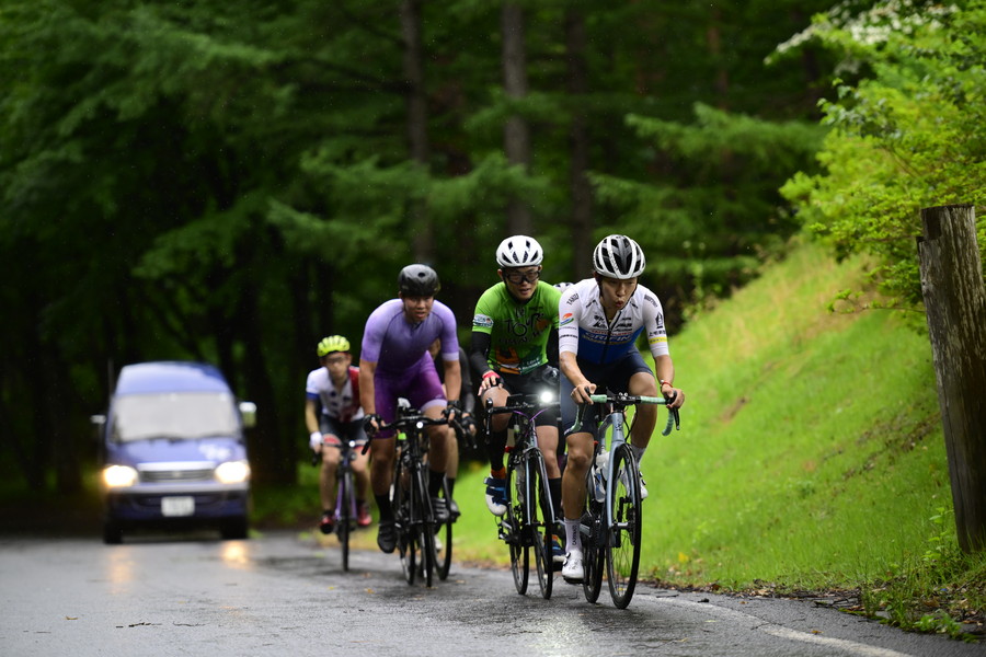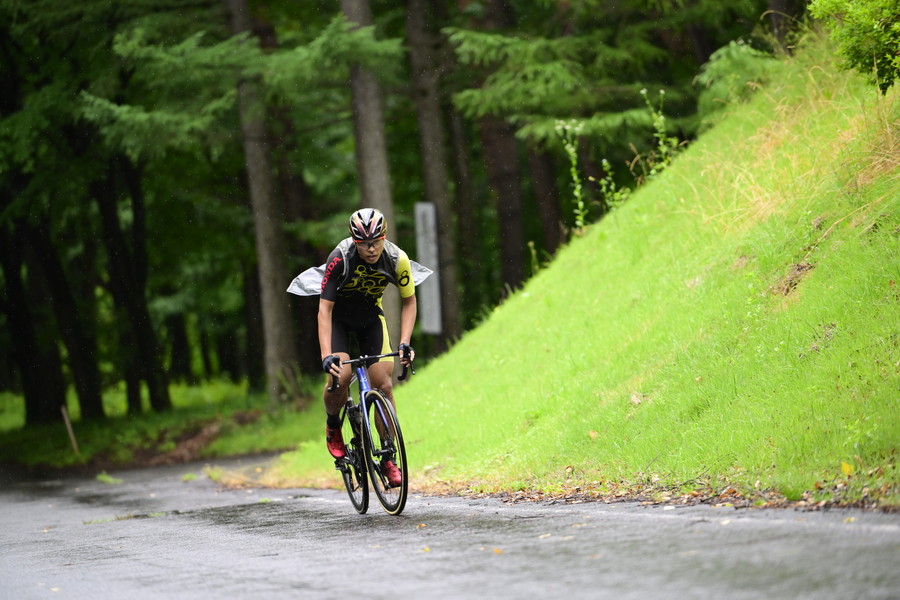 長い21世紀の森の上りでは、高岡亮寛さんがシッティングとカミソリのようなダンシングを織り交ぜ、単独で頂上まで駆け上るとそのまま休憩もはさまず下りへと消えていく。