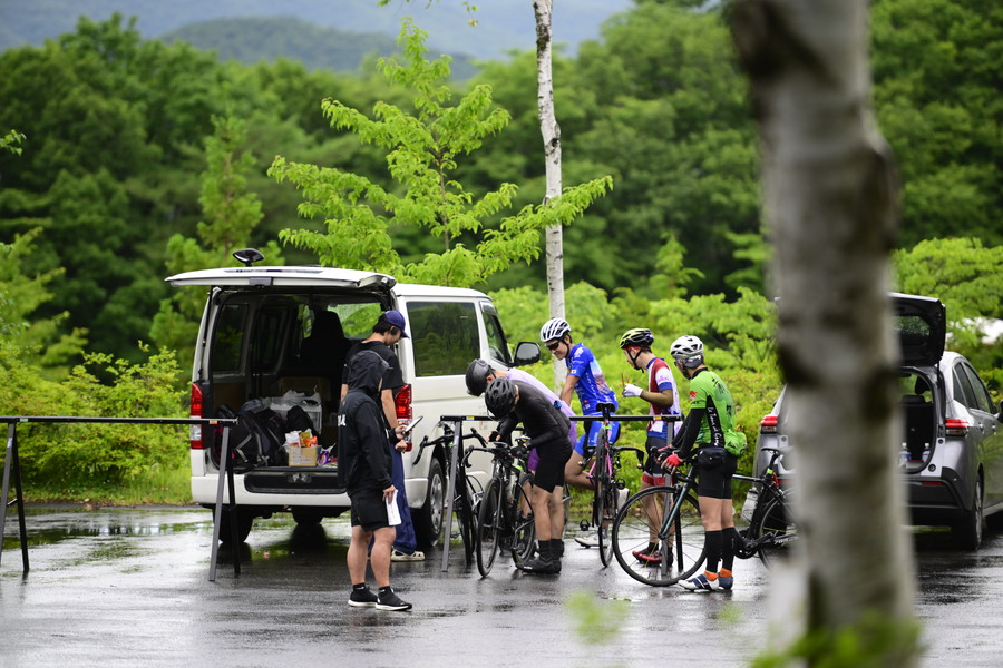 武尊山upコースを終え、川場田園プラザに帰ってきた。もう一度気合を入れ直して、赤城山upコースへと向かう参加者たち。残り時間との兼ね合いでセヤDさんはここでDNFへ。
