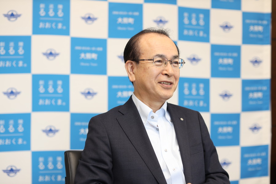 大熊町はゼロカーボンを推進しており、自転車との相性もいい。いちごや甘酒でも有名。「復興しているところ、まだなところ、両方みていただきたい」という大熊町の吉田淳町長。高校時代に自転車で10km通学したときに使ったルートもコースに含まれており縁を感じるという。